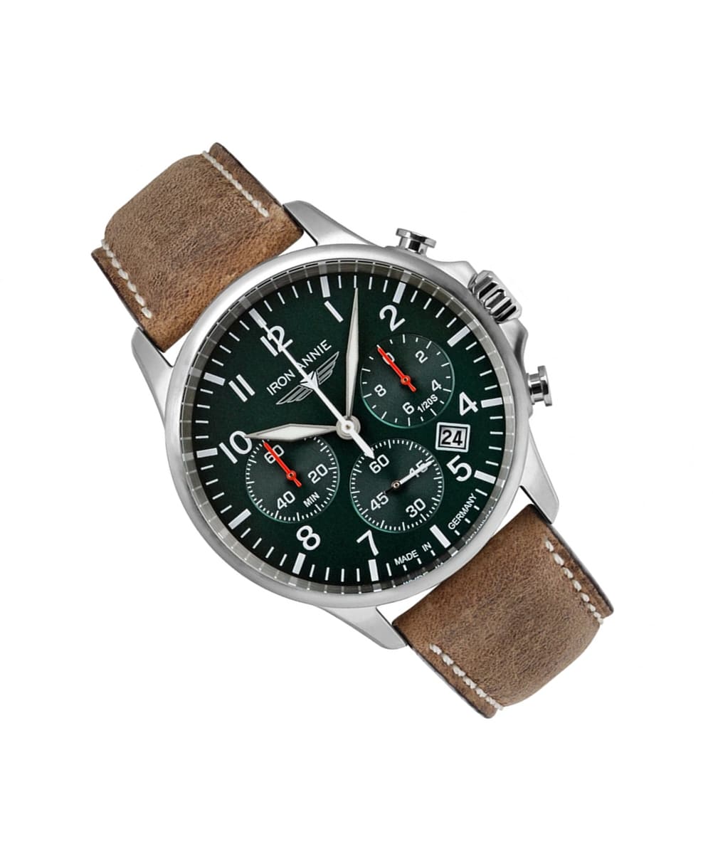 With a sharp Aviator style, this Iron Annie 5872-4 Captain’s Line Green watch has something to please fans of Quartz watches with solid movements.